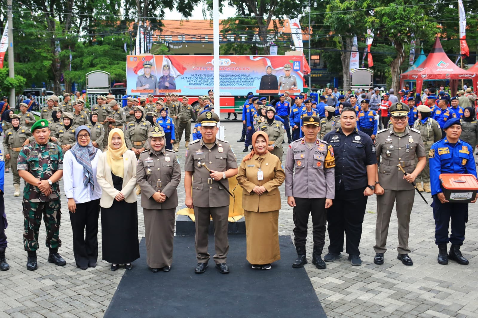 Kanigaran – Senin (24/3), Apel Kesiapsiagaan dalam rangka peringatan HUT ke-106 Pemadam Kebakaran (Damkar), HUT ke-75 Satuan Polisi Pamong Praja (Satpol PP), serta HUT ke-63 Satuan Perlindungan Masyarakat (Satlinmas) digelar di halaman Satpol PP Kota Probolinggo. Acara ini juga dirangkai dengan Pemusnahan Barang Kena Cukai (BKC) Ilegal hasil temuan tahun 2024 lalu.