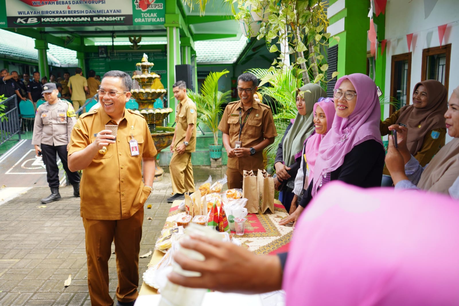 KADEMANGAN—Dalam rangka merealisasikan program 100 hari kerja, Wali Kota Probolinggo dr. Aminuddin berkantor langsung di Kecamatan Kademangan untuk memantau pelayanan publik serta berdialog dengan masyarakat dan jajaran kecamatan guna mengevaluasi dan mempercepat program prioritas pembangunan daerah, Senin (19/5) siang.