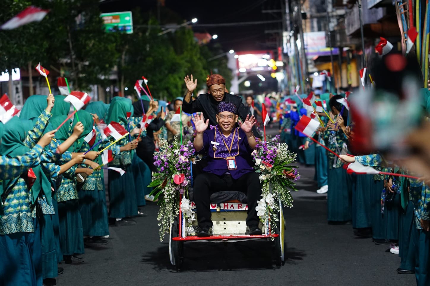 Menariknya, para delegasi yang menggunakan pakaian khas Kota Kediri itu diarak menaiki becak hias dari hotel menuju venue acara. Momen ini menjadi simbol keakraban dan penghargaan terhadap budaya lokal, menciptakan suasana guyub yang mengesankan.