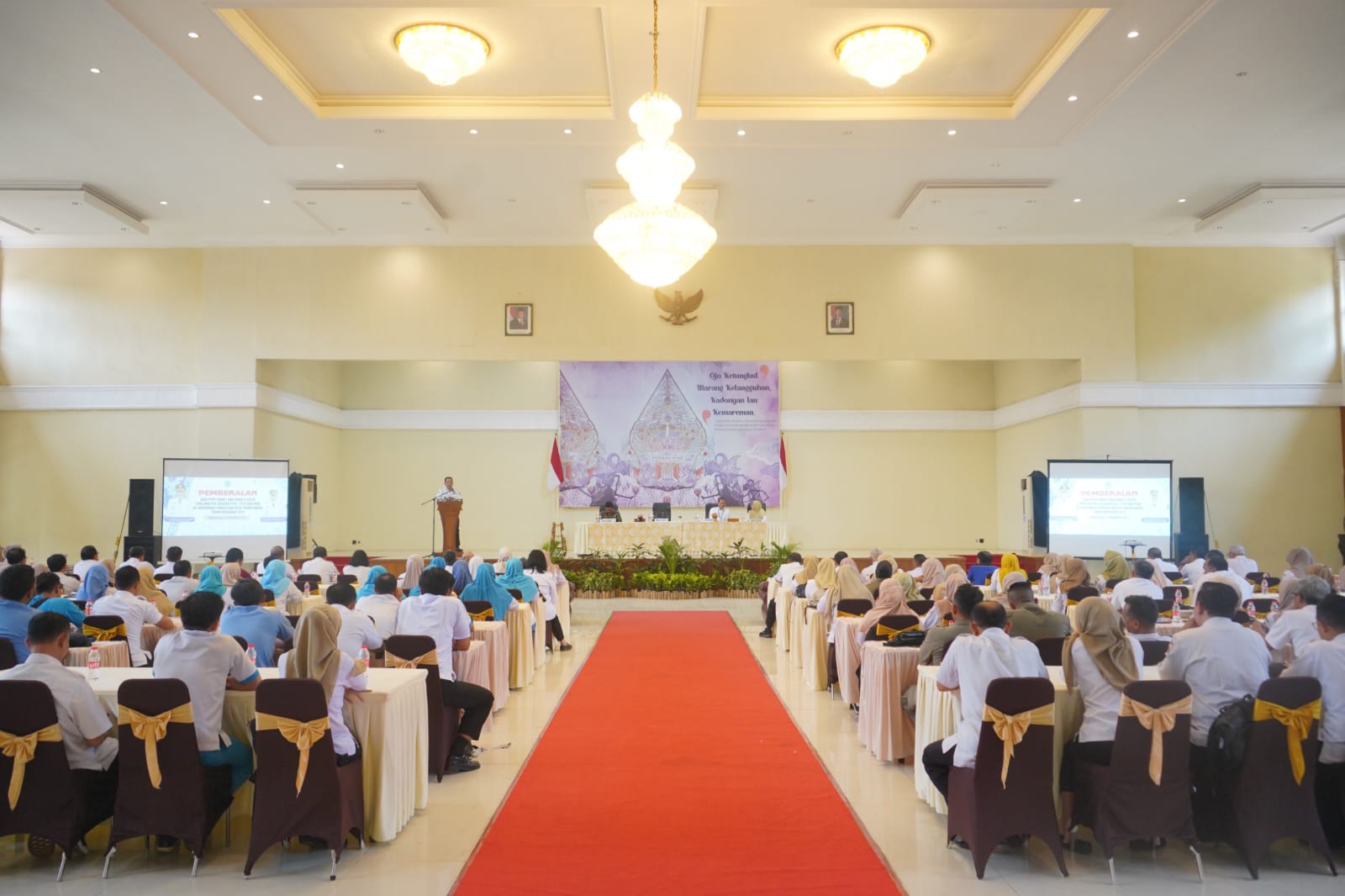KANIGARAN - Wali Kota Probolinggo dr. Aminuddin membuka kegiatan Pembekalan Calon Pegawai Negeri (CPNS) dan Pegawai Negeri Sipil (PNS) Lulusan PTDI-STTD dan IPDN, serta Pegawai Pemerintah dengan Perjanjian Kerja (PPPK) tahap I dan II Tahun Anggaran 2024 di Lingkungan Pemerintah Kota Probolinggo. Giat itu berlangsung di Ballroom Paseban Sena, Jl. Suroyo, Rabu pagi (26/11).