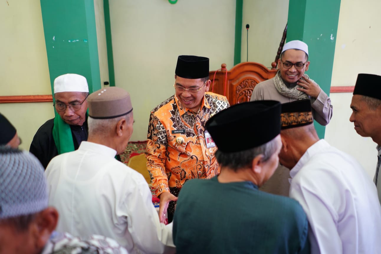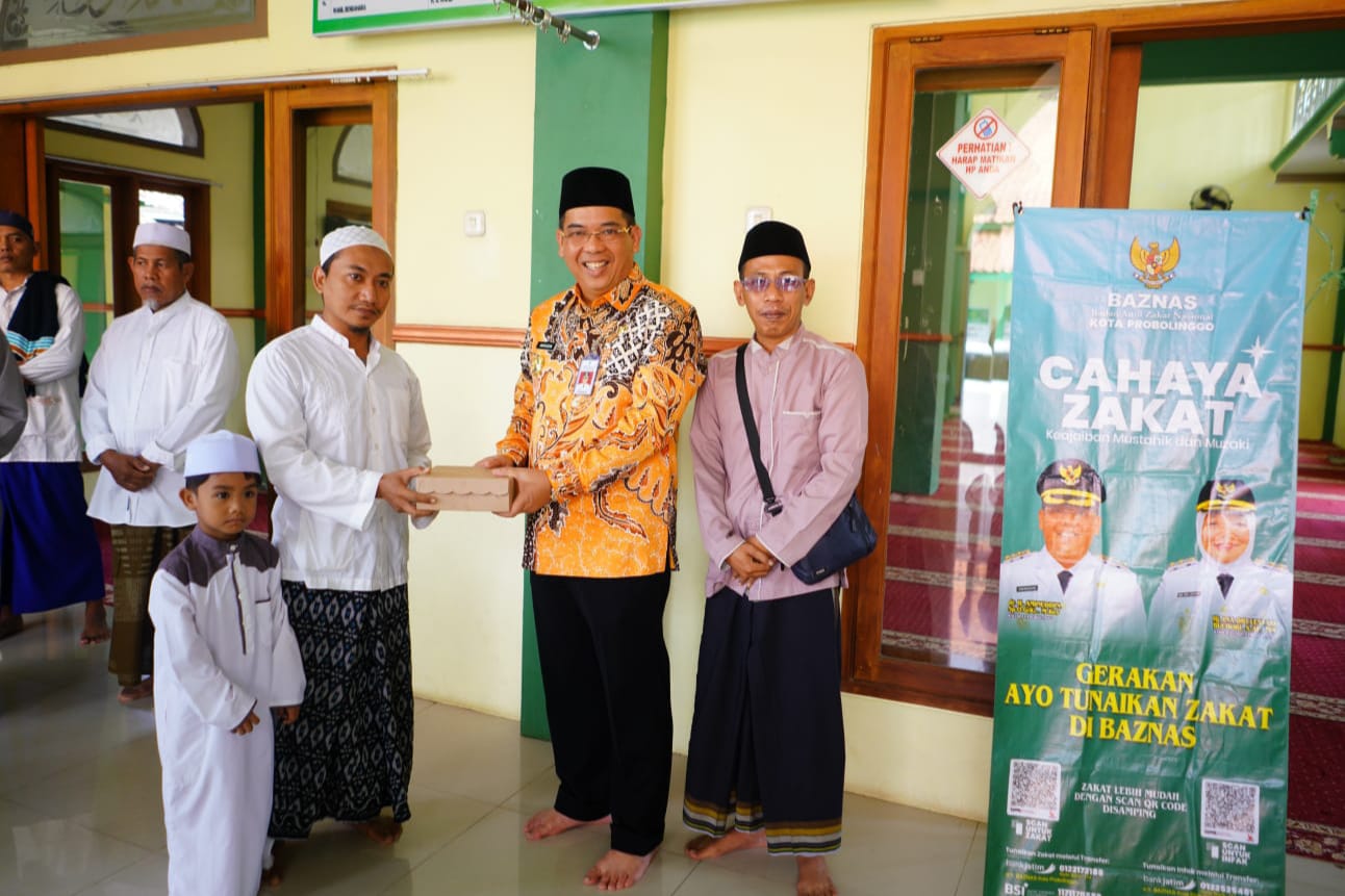 KANIGARAN - Wali Kota Probolinggo, dr. Aminuddin, menyapa warga Kelurahan Kanigaran. Kali ini dalam agenda safari Salat Jumat yang digelar di Masjid Haqqul Yaqin, Jalan Slamet Riyadi, Jumat (13/6) siang. Kegiatan ini juga dirangkai dengan program Jumat Berkah, yakni pembagian paket nasi kotak kepada jemaah masjid setempat.