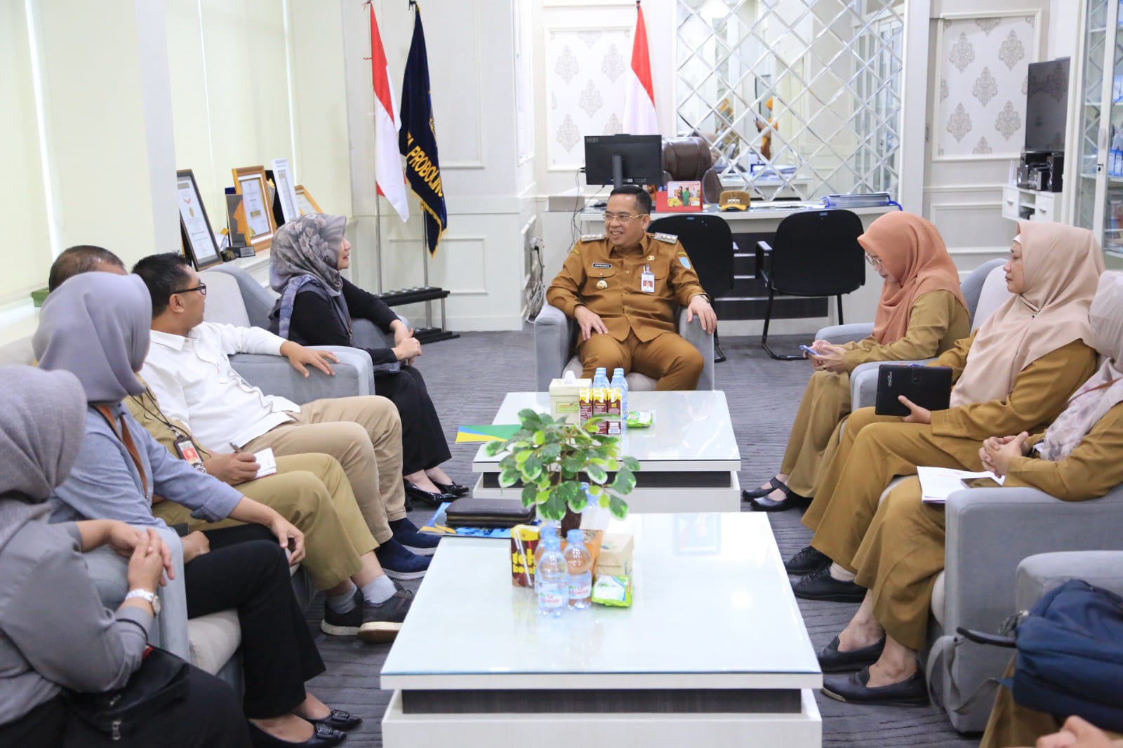 Hadir dalam pertemuan tersebut, Asisten Pemerintahan Madihah, Kepala Dinas Sosial, Pemberdayaan Perempuan, dan Perlindungan Anak (Dinsos PPPA) Rey Suwigtyo, Kepala Badan Pendapatan, Pengelolaan Keuangan, dan Aset Daerah (BPPKAD) Ratri Dian Sulistyawati, Kepala Dinas Koperasi, Usaha Kecil Menengah, dan Perdagangan (DKUP) Fitriawati, Sekretaris Dinas Kependudukan dan Pencatatan Sipil (Disdukcapil) Rudi.