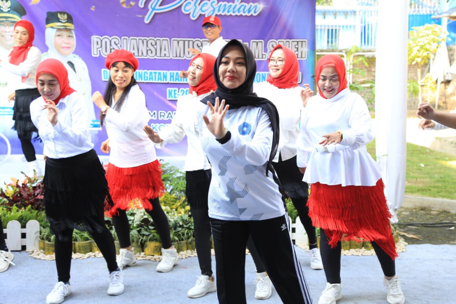 Peresmian pos lansia ditandai dengan penandatanganan prasasti, pengguntingan pita, serta peninjauan langsung fasilitas oleh Wali Kota bersama jajaran pejabat dan tamu undangan.