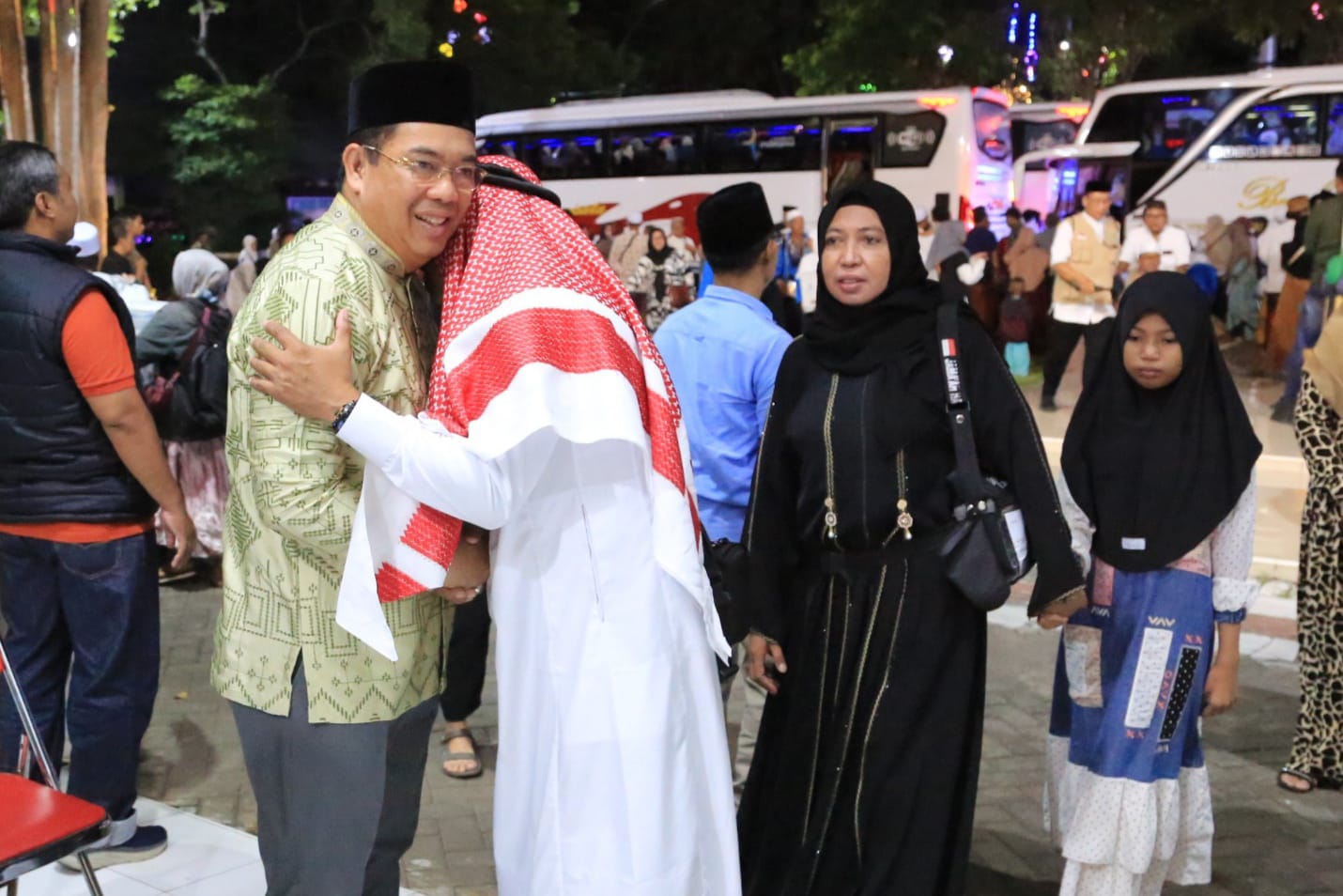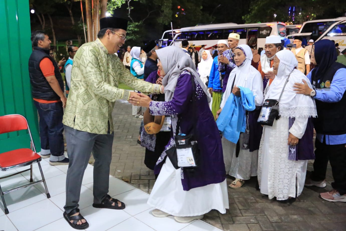 KANIGARAN – Wali Kota Probolinggo dr Aminuddin menyambut kedatangan jemaah haji Kota Probolinggo, Selasa (18/7). Sekira pukul 02.05 jemaah haji tiba di Kantor Wali Kota Probolinggo. Suasana haru, bahagia dan duka menyelimuti kedatangan para jemaah yang rampung melaksanakan salah satu dari lima rukun Islam ini.