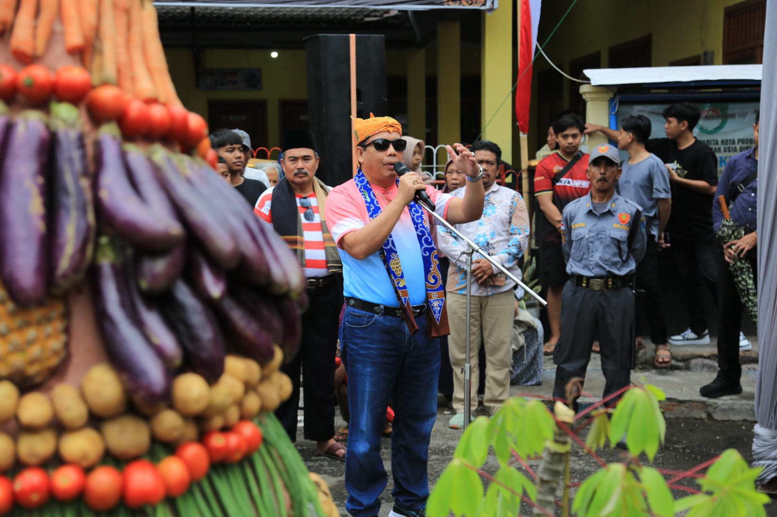 Sekitar pukul 13.30 WIB, Wali Kota dr. Aminuddin yang tiba di lokasi langsung disambut warga dengan dikenakan blangkon dan kain batik sebagai simbol penghormatan. Tak lama berselang, seusai sambutan, wali kota diminta secara langsung untuk memetik dan menyerahkan gunungan hasil bumi kepada warga.