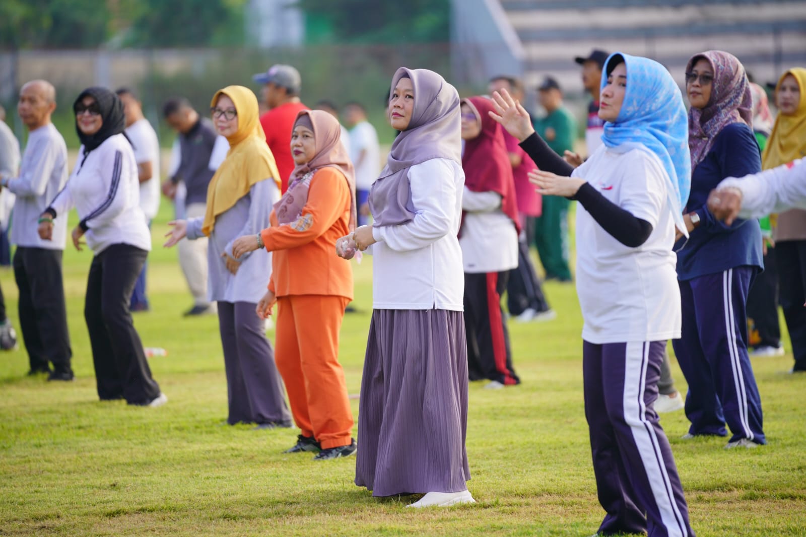 “Pagi ini kami bersama-sama melaksanakan olahraga senam, dalam upaya menjaga kebugaran tubuh kita, agar tetap sehat dan prima serta menjalin silaturahmi antar para ASN dan non ASN, ujarnya.