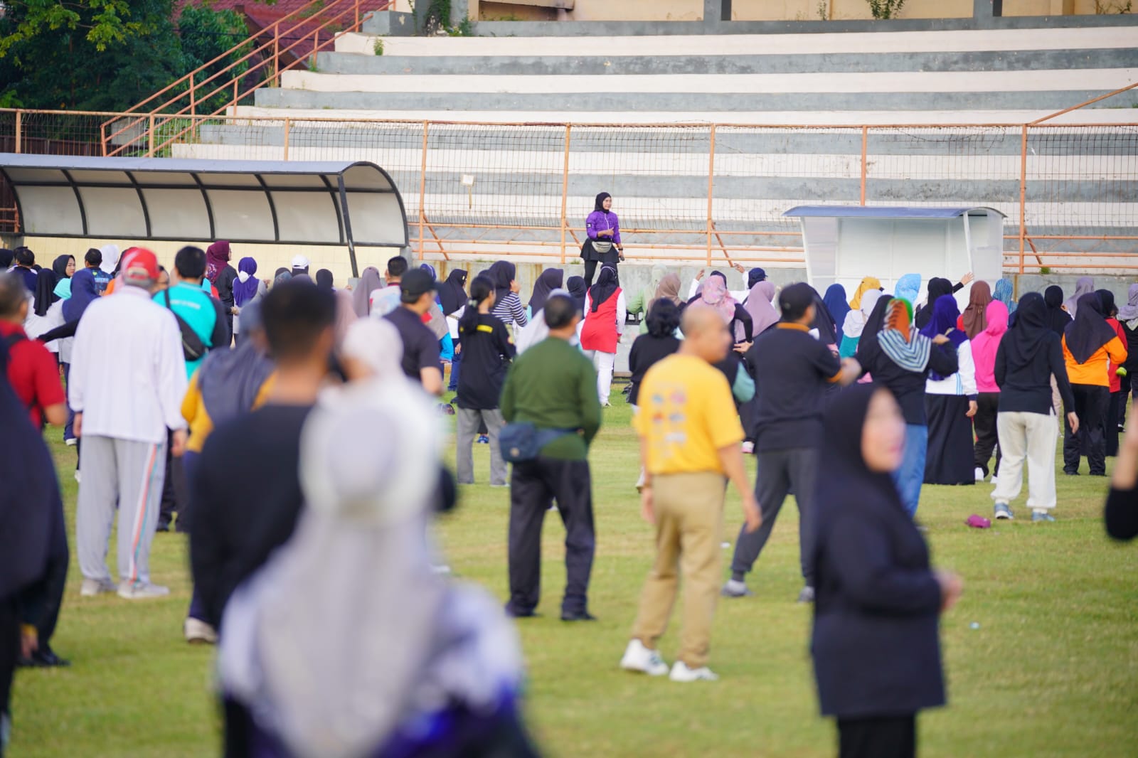 KANIGARAN—Mengawali aktivitas di Jumat (9/5) pagi, Wakil Wali Kota Probolinggo Ina Dwi Lestari menghadiri sekaligus turut berpartisipasi pada kegiatan senam bersama para ASN dan non ASN di lingkungan Pemerintah Kota Probolinggo yang bertempat di Stadion Bayuangga Kota Probolinggo.