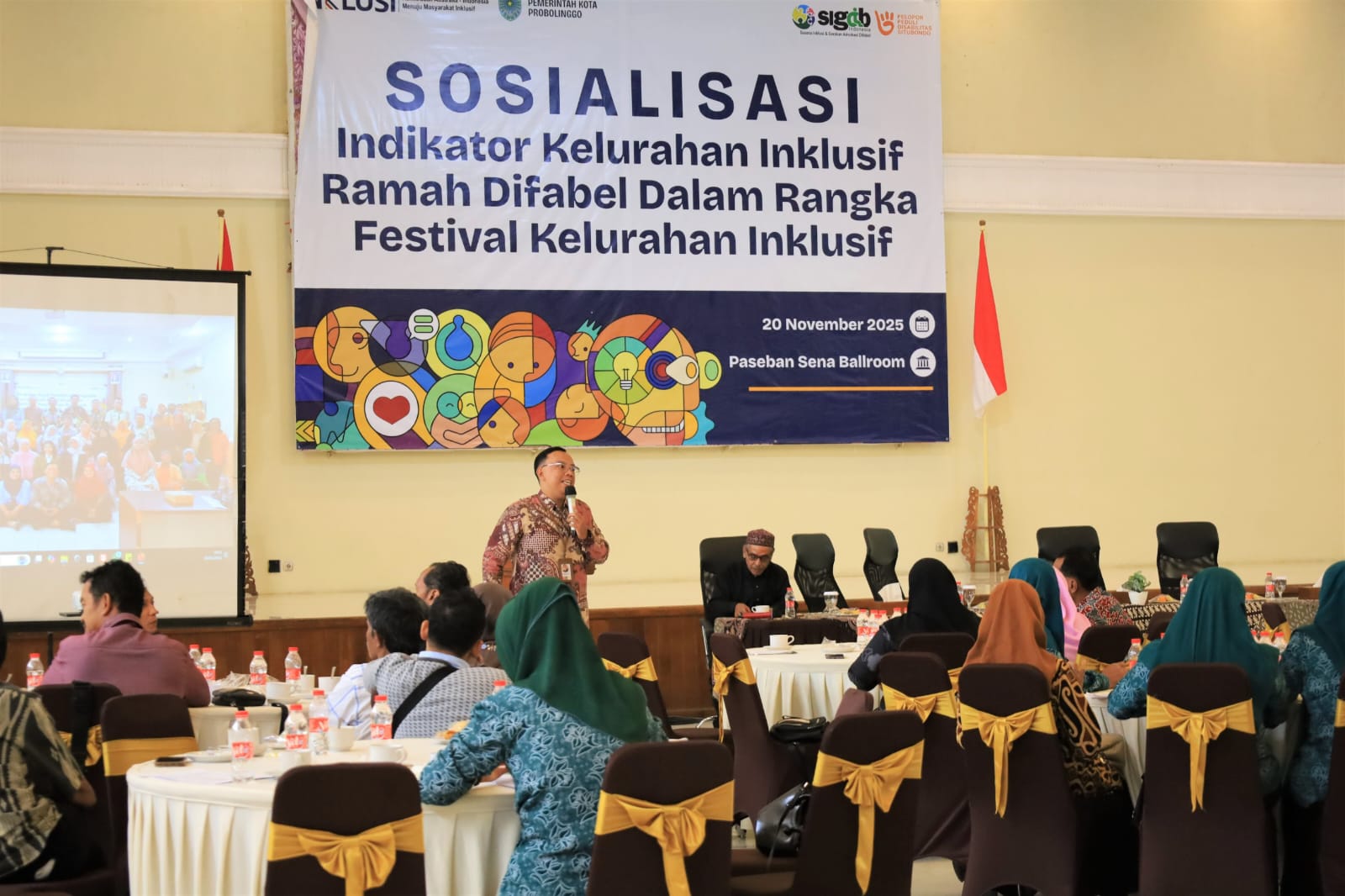 Salah satu perwujudan komitmen tersebut, Pemerintah Kota Probolinggo bekerja sama dengan Pelopor Peduli Disabilitas Situbondo (PPDIS) dan Sasana Inklusi dan Gerakan Advokasi Difabel (SIGAB) Indonesia menggelar Sosialisasi Indikator Kelurahan Inklusif Ramah Difabel dalam rangka 'Festival Kelurahan Inklusif Kota Probolinggo Tahun 2025', Kamis (20/11) siang di Paseban Sena.