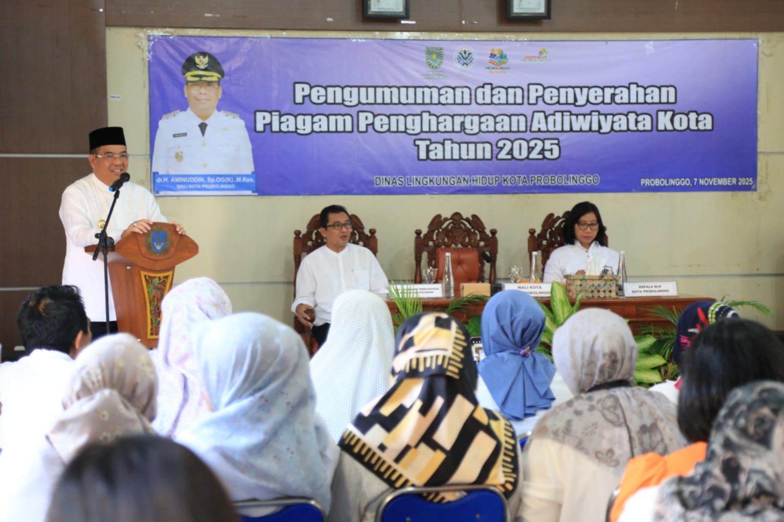 Mayangan – Sebagai bentuk apresiasi terhadap sekolah-sekolah yang peduli dan berbudaya lingkungan, DLH Kota Probolinggo menggelar acara Pengumuman dan penyerahan piagam Penghargaan Adiwiyata Kota Probolinggo tahun 2025 di Aula Bestari Dinas Lingkungan Hidup jalan anggrek lingkar Utara, Jumat (7/11).