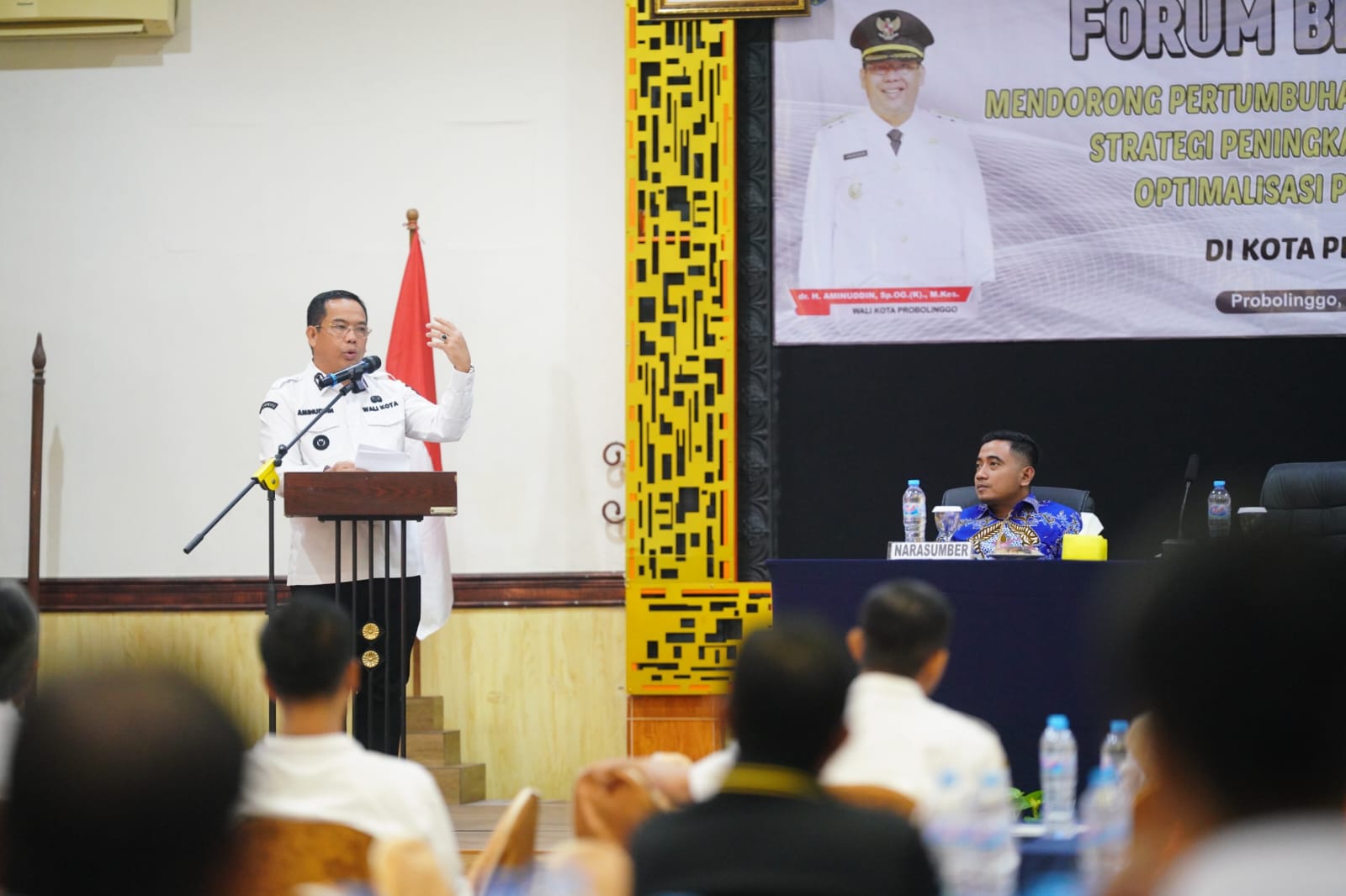 Wali Kota Probolinggo dr. Aminuddin membuka kegiatan Pembekalan Calon Pegawai Negeri (CPNS) dan Pegawai Negeri Sipil (PNS) Lulusan PTDI-STTD dan IPDN, serta Pegawai Pemerintah dengan Perjanjian Kerja (PPPK) tahap I dan II Tahun Anggaran 2024 di Lingkungan Pemerintah Kota Probolinggo. Giat itu berlangsung di Ballroom Paseban Sena, Jl. Suroyo, Rabu pagi (26/11).