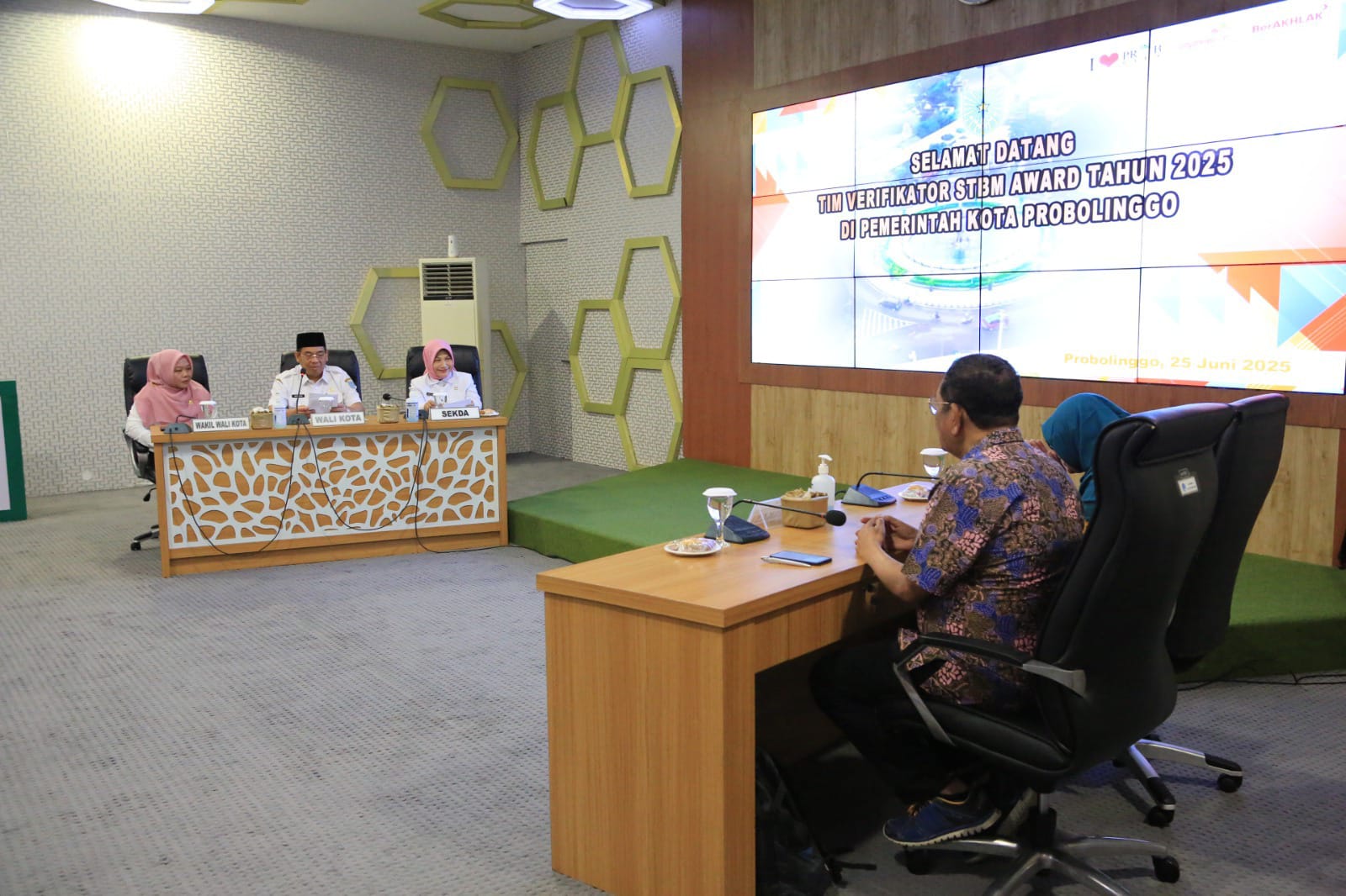 Bertempat di Command Center Kantor Wali Kota Probolinggo, Rabu (25/6) Pemerintah Kota Probolinggo menerima kunjungan Tim Verifikator Kementerian Kesehatan dalam rangka Verifikasi Lapangan Sanitasi Total Berbasis Masyarakat (STBM) Award 2025.