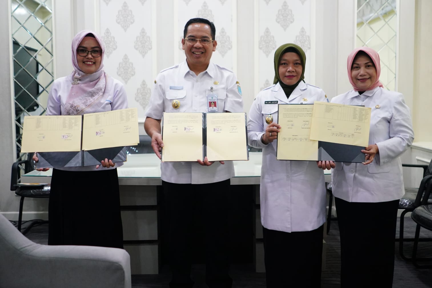 Wali Kota Probolinggo dr Aminuddin didampingi Wawali Ina Dwi Lestari bersama Ketua DPRD Dwi Laksmi Syntha Kusumawardhani panen padi organik dan cabai besar organik di Demplot Dinas Ketahanan Pangan Pertanian dan Perikanan (DKPPP) Jalan Sunan Muria, Rabu (28/5) siang. Kegiatan ini merupakan bentuk dukungan program swasembada pangan dan gerakan pengendalian inflasi pangan.