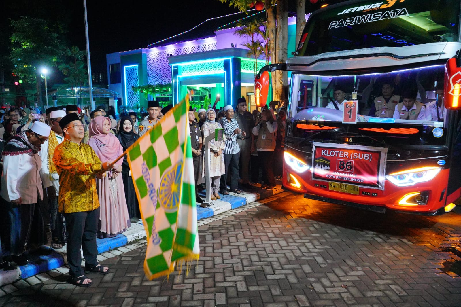 Senin malam (26/5), suasana haru dan penuh doa menyelimuti halaman Kantor Wali Kota Probolinggo. Ratusan warga dan keluarga mengantar keberangkatan 214 Jemaah Calon Haji asal Kota Probolinggo yang tergabung dalam kloter 86 menuju tanah suci Mekah. Seremonial pelepasan berlangsung khidmat di Puri Manggala Bhakti, Jalan Panglima Sudirman.