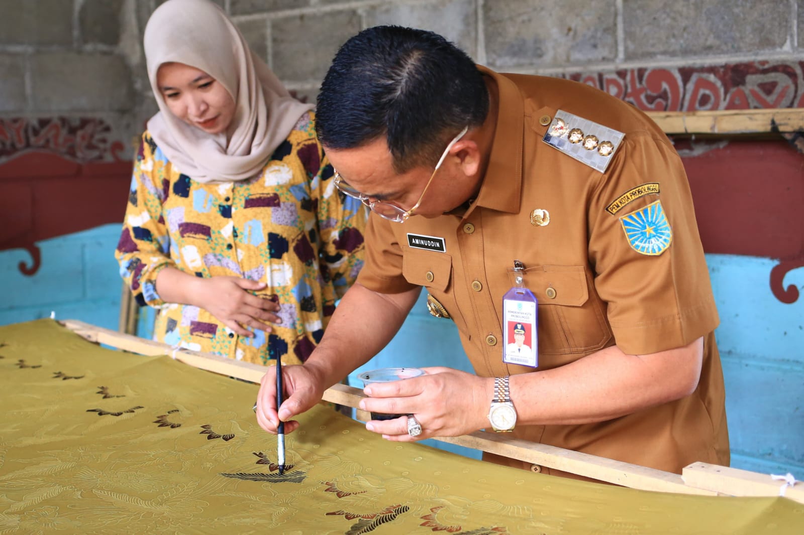 Masih dalam rangka kegiatan Berkantor di Kelurahan Triwung Lor, Senin (14/4) siang, Wali Kota Probolinggo dr. Aminuddin menyempatkan untuk mengunjungi galeri Day Art Batik, milik Friday Purnama Sari di Jalan Merapi. Dalam kunjungannya, wali kota melihat berbagai koleksi batik khas Kota Probolinggo serta berbincang dengan pemilik usaha mengenai peluang kerja sama untuk pengembangan usaha batik ke depan.