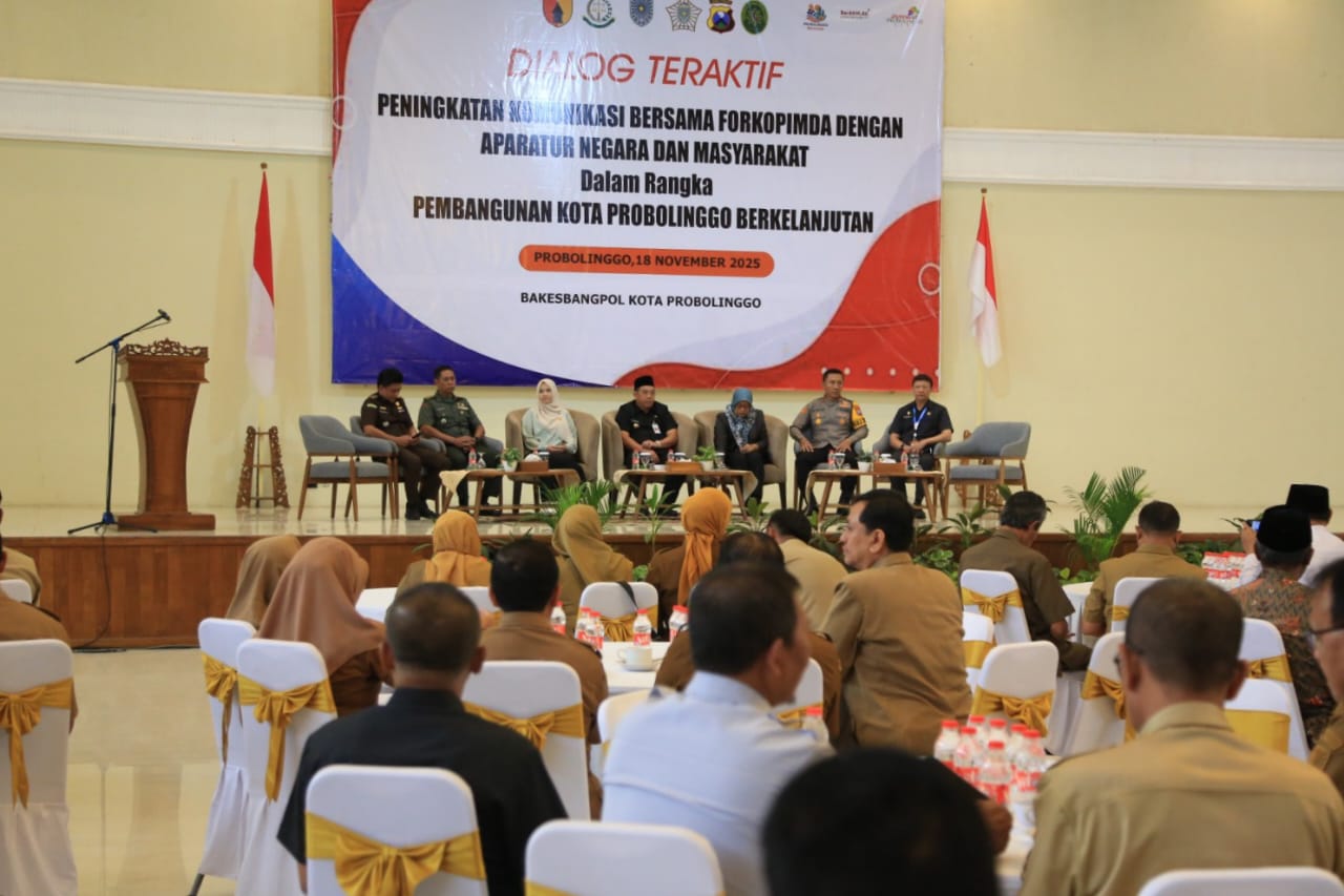 Pemkot Probolinggo melalui Badan Kesatuan Bangsa dan Politik Kota Probolinggo (Bangkesbangpol) menggelar Dialog Interaktif Peningkatan Komunikasi Bersama Forkopimda dengan Aparatur Negara dan Masyarakat guna pembangunan Kota Probolinggo yang berkelanjutan. Pertemuan ini membahas berbagai persoalan penting di Kota Probolinggo. Acara tersebut dilaksanakan di Paseban Sena Ballrom, Jl. Suroyo, Selasa pagi (18/11).