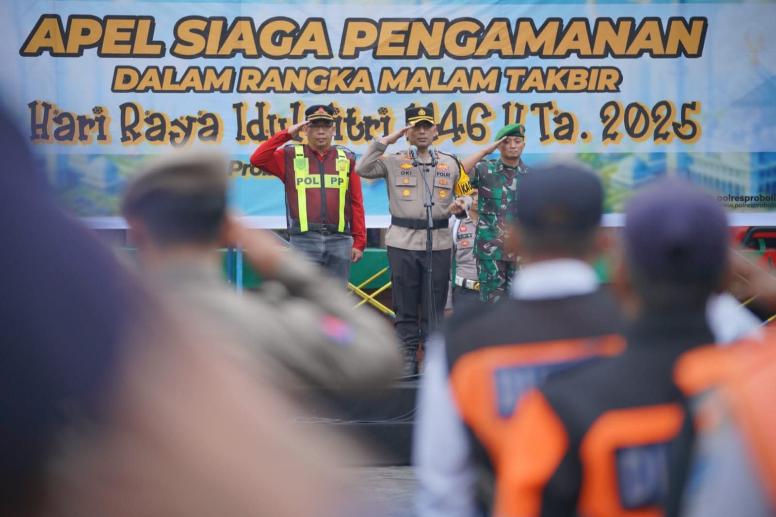 Dalam rangka menjaga kekondusifan kamtibmas (keamanan dan ketertiban masyarakat), Minggu (30/03) sore Polres Probolinggo Kota menggelar Apel Kesiapan Pengamanan Malam Takbir Hari Raya Idulfitri 1446 H di Halaman Mako Satpol PP-Damkar Kota Probolinggo.