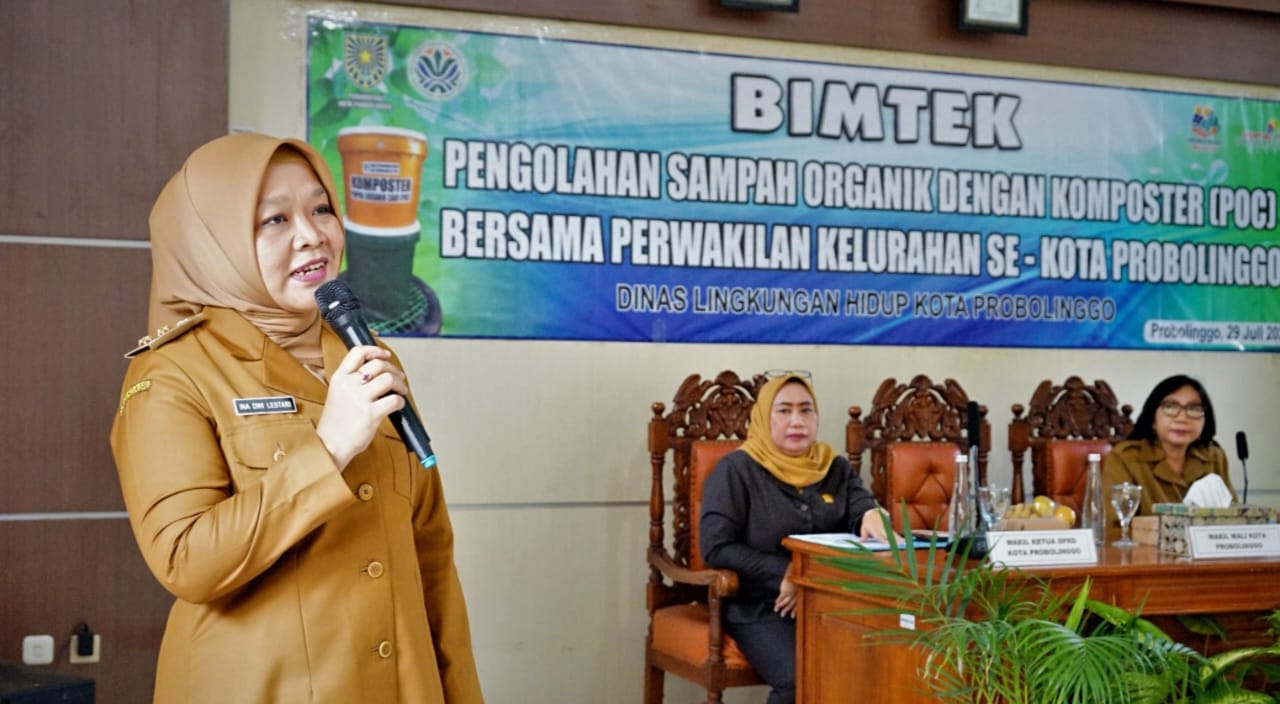 Wakil Wali Kota Probolinggo, Ina Dwi Lestari, hadir sebagai narasumber dalam kegiatan bimbingan teknis (bimtek) bertemakan lingkungan. Yakni, Bimtek Pengolahan Sampah Organik dengan Komposter (POC) bersama Perwakilan Kelurahan se-Kota Probolinggo, Selasa (29/7) pagi. Kegiatan ini digelar oleh Dinas Lingkungan Hidup (DLH) di Aula Bestari kantor setempat.