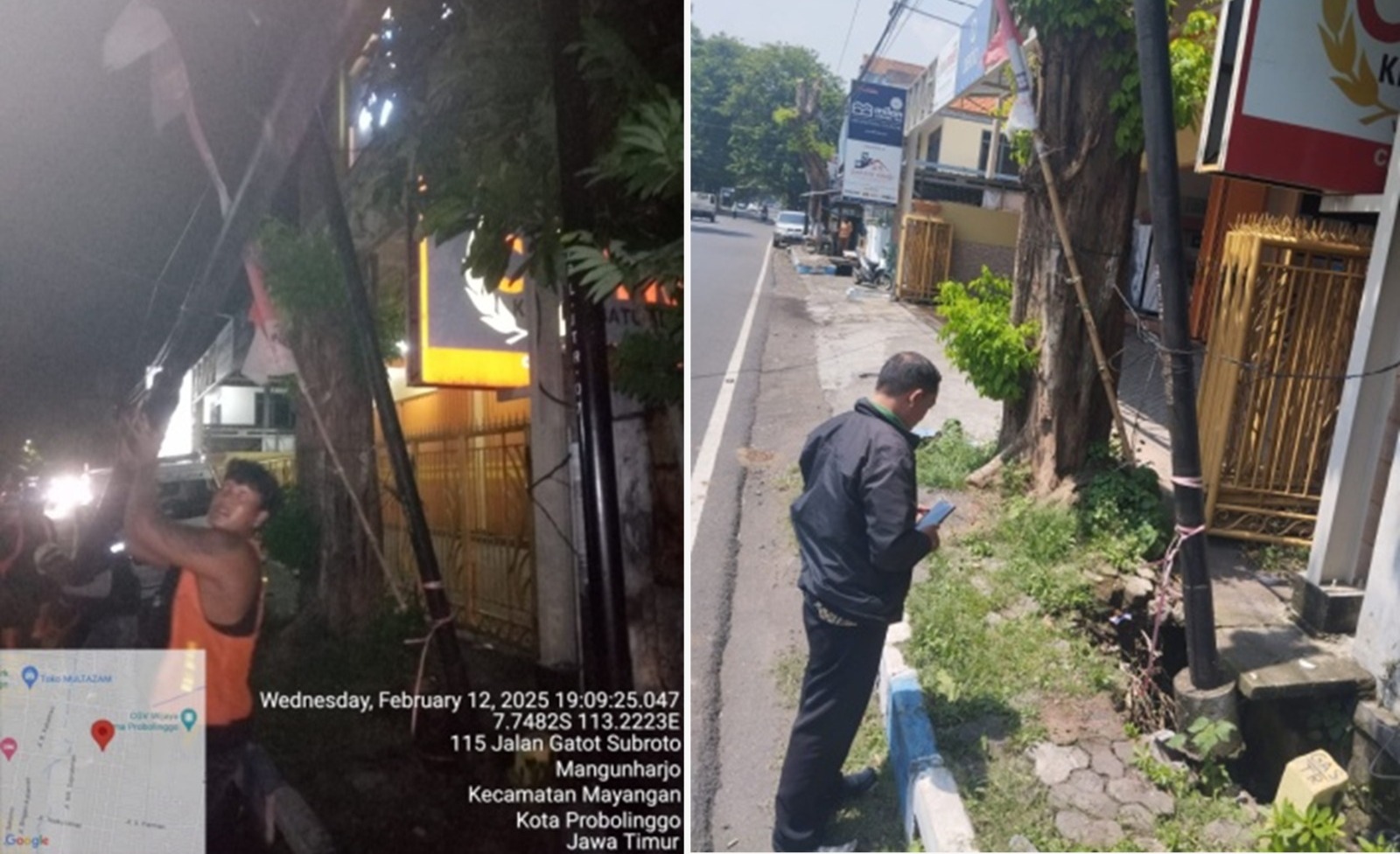Warga Kelurahan Mangunharjo melaporkan kembali, bahwasannya di depan Toko bangunan Cahaya Abadi ada tiang provider yang pondasinya ambles tergerus air sungai, kondisi tiang akan roboh ke jalan, membahayakan pengguna jalan. Tindak lanjut, Pihak dari Provider sudah mendatangi lokasi laporan tiang miring lokasi di depan Toko Bangunan Cahaya Abadi, Jl. G. Subroto, Mangunharjo, terdapat 2 tiang miring, pihak provider Indibiz sudah melakukan pergantian 1 tiang, sedangkan 1 tiang belum dilakukan pergantian oleh provider lain.