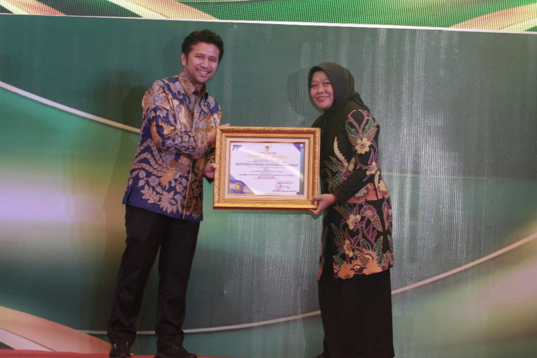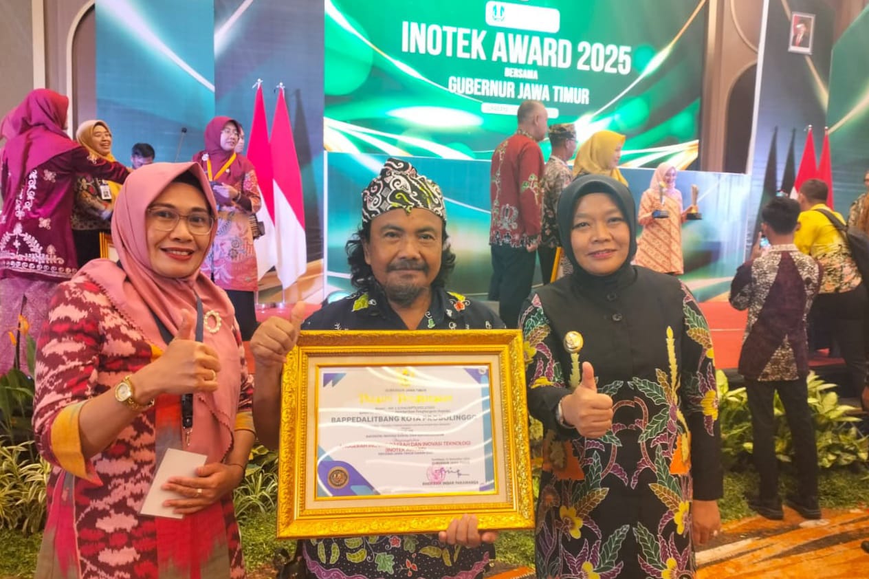Penghargaan tersebut diserahkan Plh Gubernur Jawa Timur Emil Elistianto Dardak kepada Wakil Wali Kota Probolinggo Ina Dwi Lestari, di Surabaya, Kamis (13/11). Wawali Ina hadir bersama perwakilan Badan Perencanaan Pembangunan, Riset dan Inovasi Daerah (BAPPERIDA) sebagai mitra inovator, dan sang inovator Edi Martono.